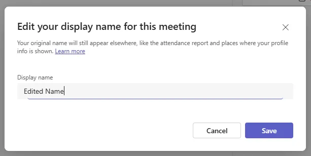 However, for Teams meetings hosted by accounts from other institutions (tenants), display name changes may not be possible depending on that institution’s admin settings.