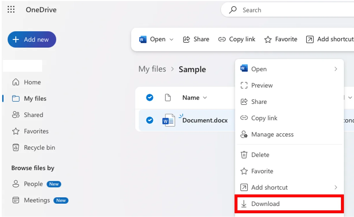 In this section, we will explain how to download files from OneDrive.