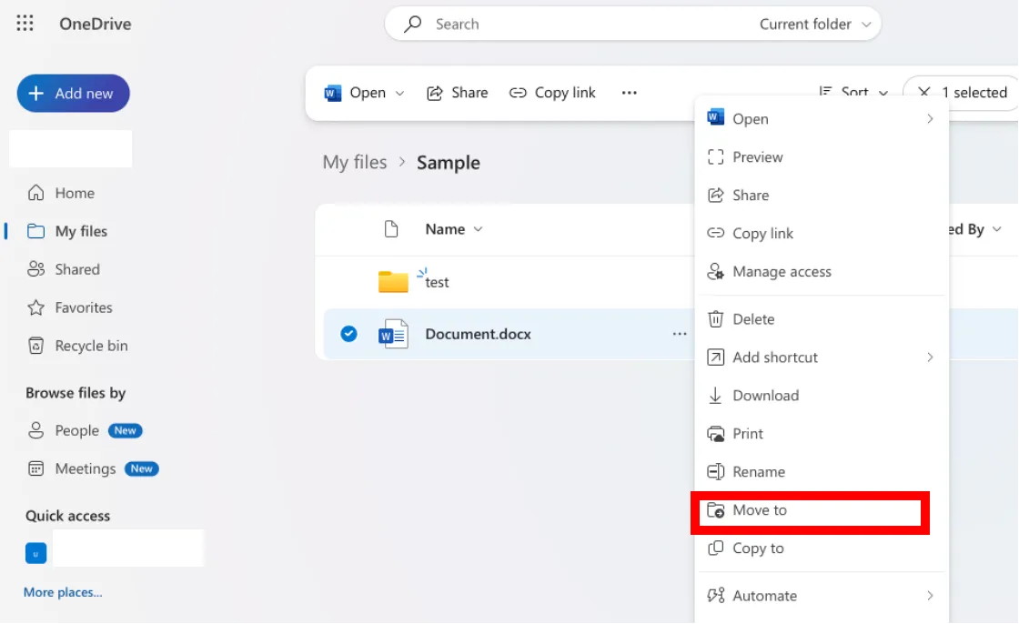 1. Please right-click the file you wish to move and select “Move to”.