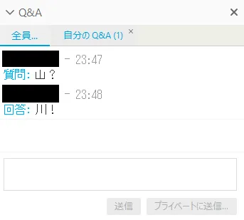 Q&A allows participants ask questions to panelists, presenters and organizers. Answered questions can be seen on the other participants’ screen. Those who have just entered the session can read all Q&As.