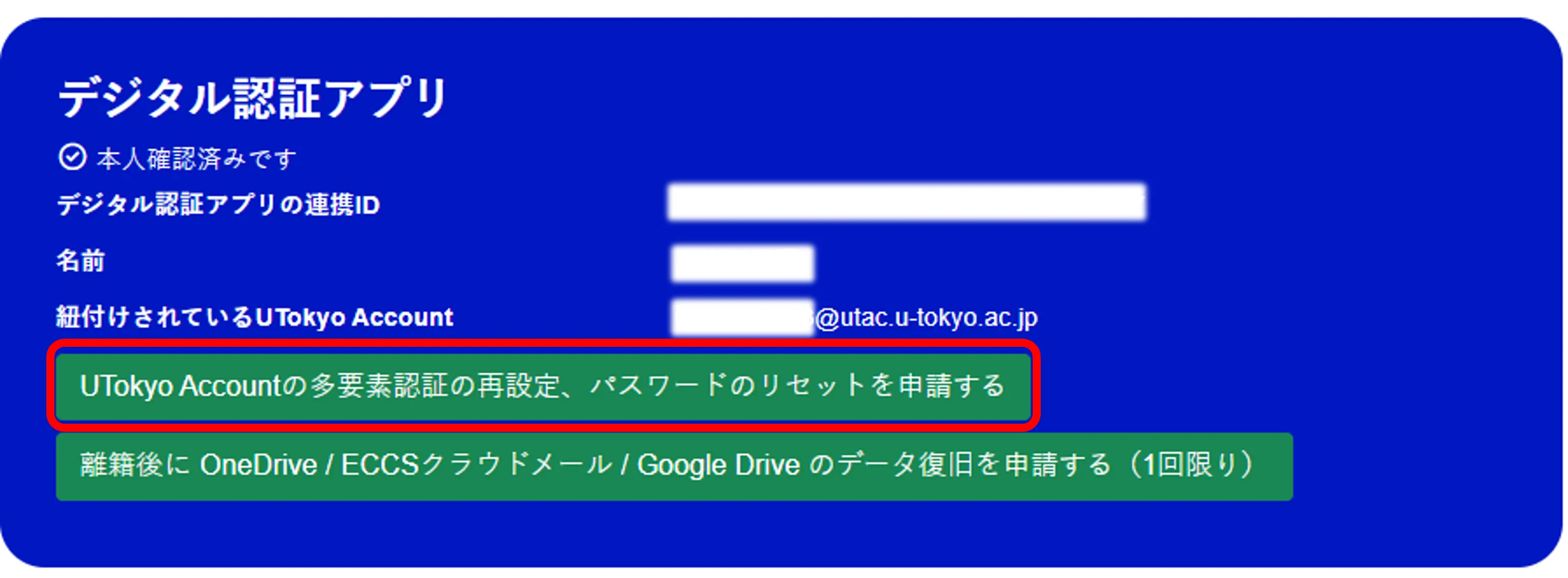 UTokyo Account利用者情報確認サイト