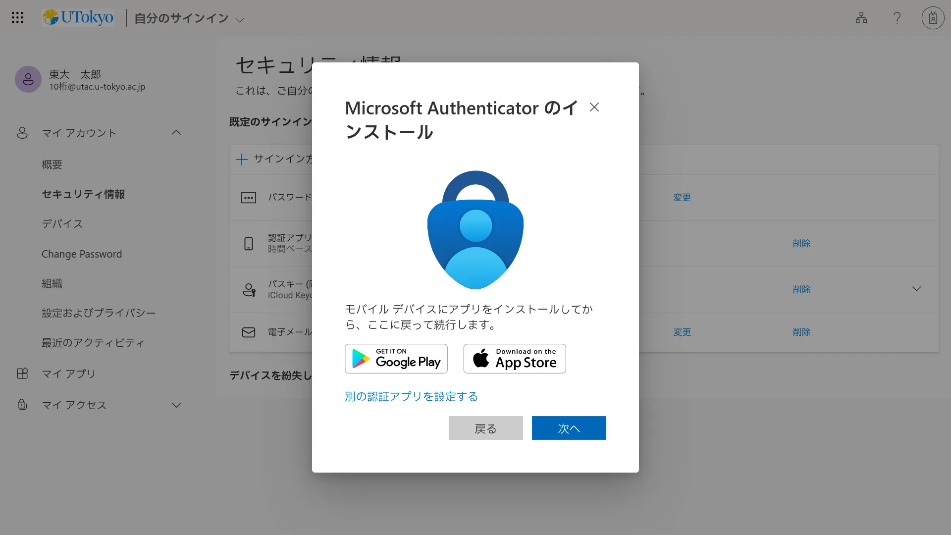 UTokyo Account多要素認証の初期設定手順