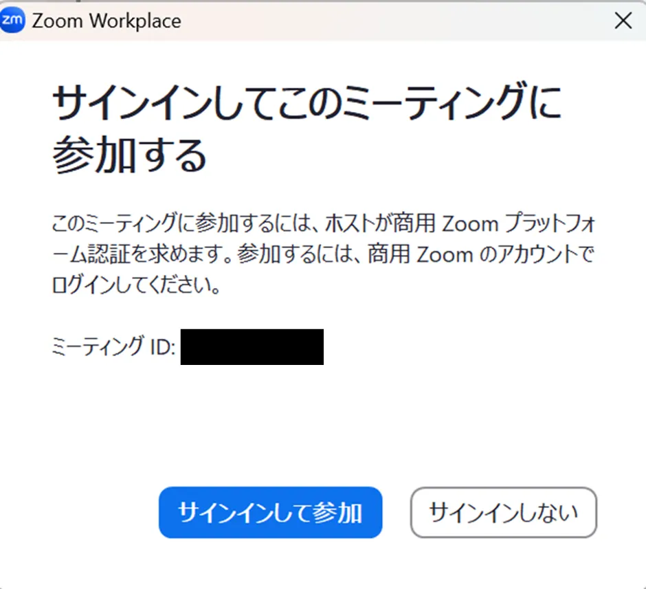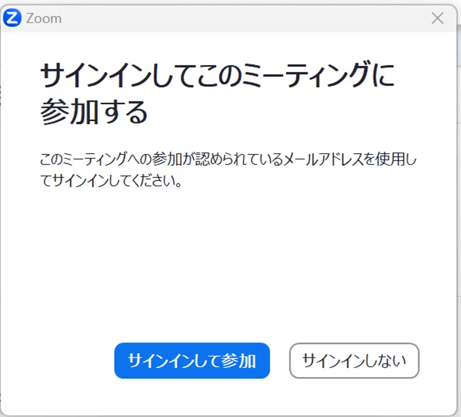 • 「サインインしてこのミーティングに参加する」という画面が表示されることがあります.この画面が表示された場合は,「サインインして参加」を押して,UTokyo AccountでZoomにサインインしてください.サインインの方法は「Zoom サインイン方法」を参照してください.